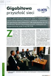 Zgodnie z hasłem konferencji, „Witaj w gigabitowym świecie”, w salach gdańskiego hotelu Golden Tulip zastanawiano się nie nad tym, czy zwiększać szybkość dostępu do intemetu, ale jak sprawić, by odbiorca miał potrzebę korzystania z takich możliwości i wybierał coraz więcej oferowanych usług. Punktem wyjścia stała się, pierwsza w Polsce, prezentacja gigabitowego dostępu do internetu poprzez sieć kablową wykorzystującą technologię DOCSIS 3.0 i bonding 24 kanałów dosyłowych. Do tej laboratoryjnej, na razie, prezentacji wykorzystano platformy kontrolerów kablowych: Arris E6000, Arris C4 oraz najnowszej generacji terminale Technicolor TC 7230. – Technologia pozwalająca na transmisje danych o prędkości powyżej lGbit/s w sieci HFC umożliwia operatorom kablowym oferowanie bardzo konkurencyjnych usług dostępu do internetu – przyznał Marcin Ulasik, dyrektor rozwoju produktu w firmie VECTOR. – Z jej wykorzystaniem długi film może zostać pobrany teoretycznie w ok. 20 sekund, przy prędkościach większych niż standardowy laptop lub modem mogą go przetworzyć. Poprzez osiągnięcie gigabitowej prędkości w infrastrukturze HFC udowadniamy że dzisiejsza kablowa sieć szerokopasmowa ma ogromny, wciąż rozwijany potencjał.