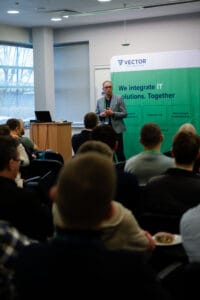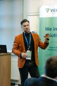 Po krótkiej przerwie kawowej rozpoczął się kolejny blok tematyczny, poświęcony bezpieczeństwu danych. W tej części prelegenci skupili się na aspektach wysokodostępnej architektury IT i sposobach jej wdrażania przy zachowaniu rozsądnych kosztów. Dużym zainteresowaniem cieszyły się także prezentacje dotyczące polityki backupu 3-2-1, poparte praktycznymi case studies. Uczestnicy mieli także okazję obejrzeć na żywo demonstrację systemu Veeam B&R, co pozwoliło im lepiej zrozumieć działanie tego rozwiązania w praktyce.