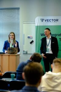 Ważnym elementem spotkania było także zwiedzanie siedziby naszej firmy i zakładu produkcyjnego. Goście mieli możliwość zobaczenia z bliska, jak wygląda codzienna praca w Grupie VECTOR oraz jakie procesy wpływają na naszą efektywność i innowacyjność. Po tej części spotkania wszyscy udali się na wspólny obiad, który sprzyjał networkingowi i wymianie doświadczeń.