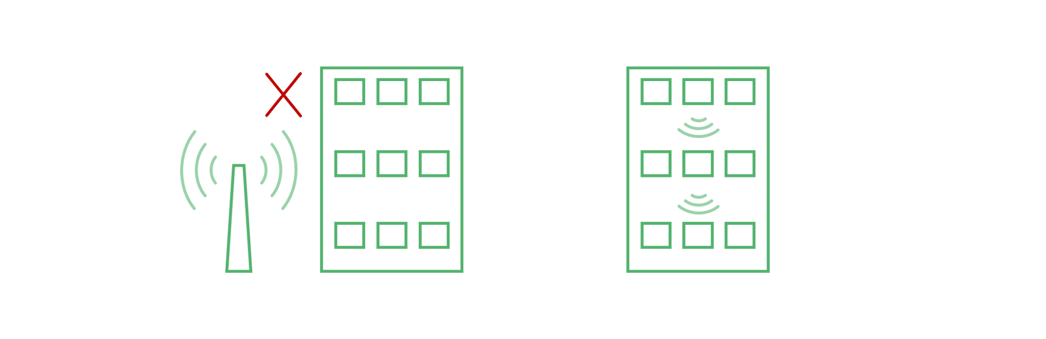 W takich miejscach tradycyjne stacje bazowe mogą nie być w stanie zapewnić równomiernego i silnego pokrycia dla wszystkich użytkowników, zwłaszcza podczas dużego obciążenia sieci (np. w trakcie imprezy masowej).